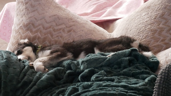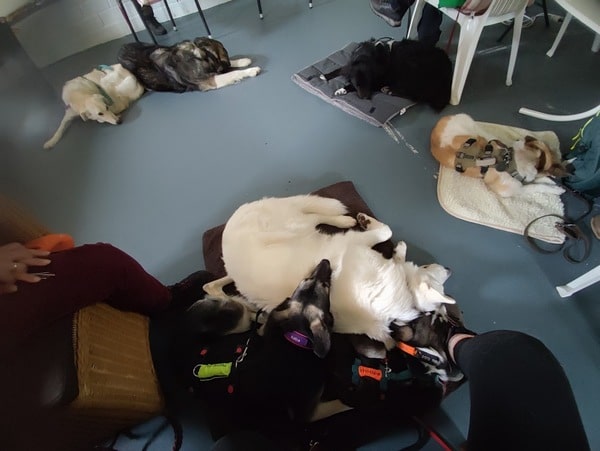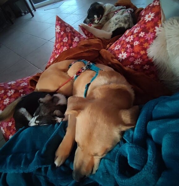 Aus dem klitzekleinen Welpchen, das mit Husten und Schnupfen hier bei uns erst mal viel Kraft zum Genesen brauchte, ist inzwischen ein aufmerksames junges Mädchen geworden. Durch eingangs viel Ruhe, viel schlafen, viel einfach nur bei einem liegen und vor allem viel warten bis die anderen Hunde von der längeren Gassirunde zurück waren, konnte sie genau das Warten und Runterkommen frühzeitig lernen. Es macht das Zusammenleben mit ihr einfach.