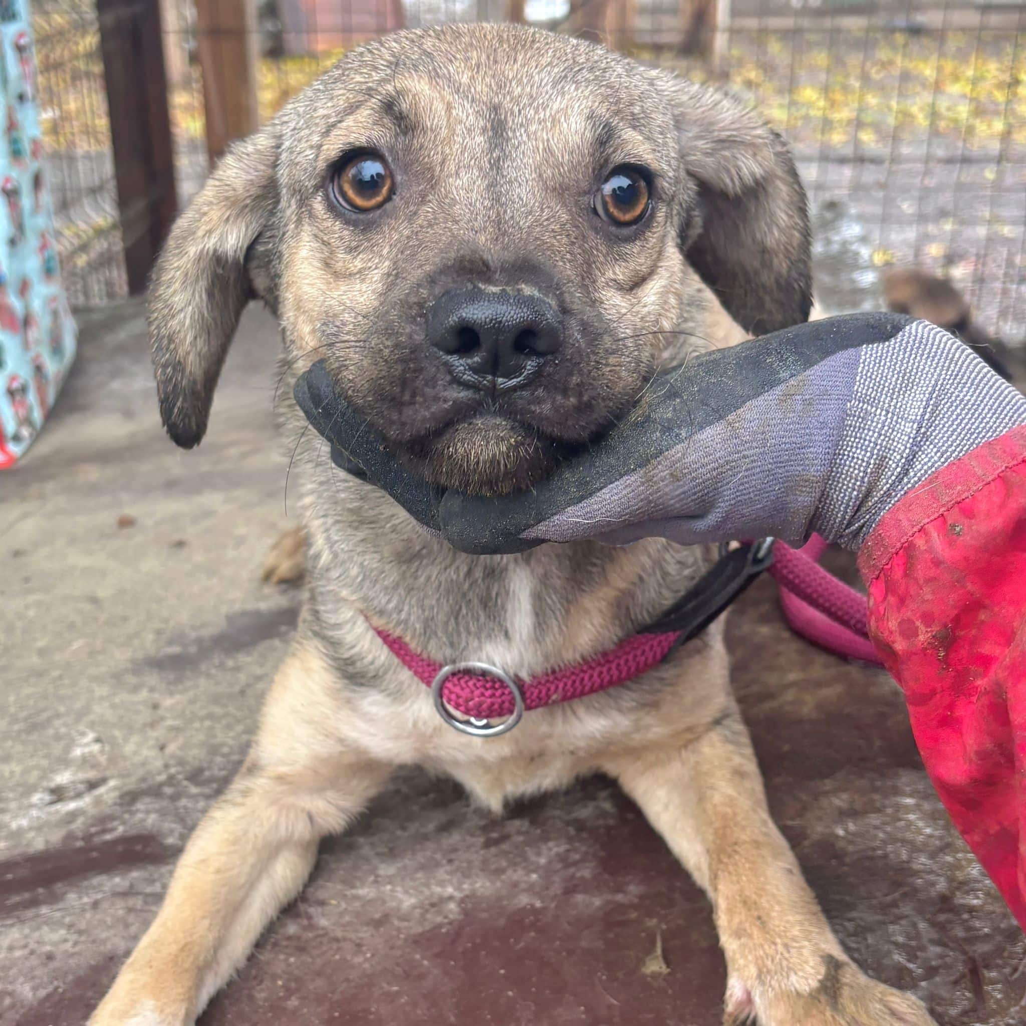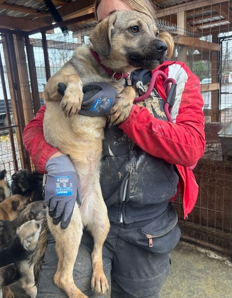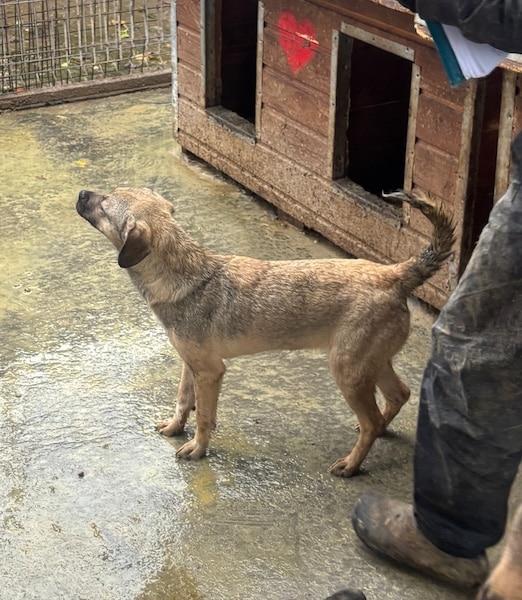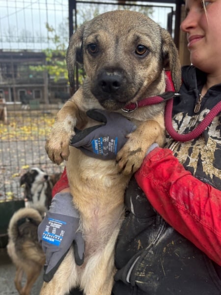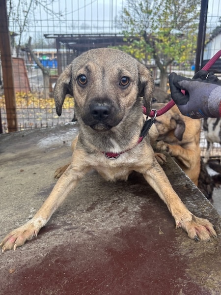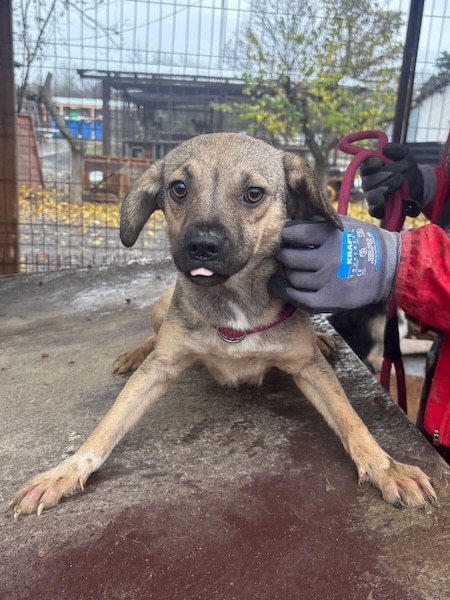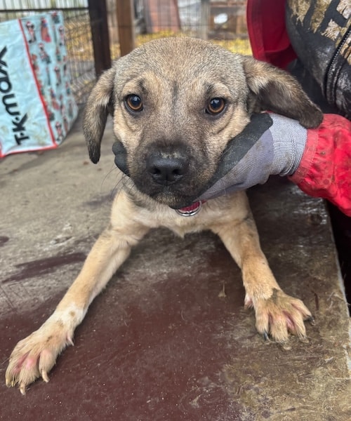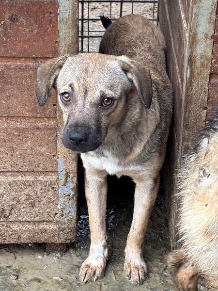 Unsere süße kleine SKYE mit ihrer niedlichen Schnute hofft inzwischen seit Monaten vergeblich im riesigen Shelter auf ihre Chance. Der fehlende Menschenkontakt macht sich bemerkbar und so war ihr unser Besuch nicht ganz geheuer. Die kleine Maus zeigte sich zwar interessiert, versteckte sich jedoch hinter den Hütten, sobald wir uns ihr aktiv näherten. Als SKYE sich schließlich in eine Hütte verkroch, konnten wir sie dort problemlos anfassen und herausheben. Sie ließ sich gut halten und streicheln, doch kann diese intensive Nähe noch nicht genießen. Für die kleine SKYE hoffen wir, dass sie nun rasch gesehen wird und auf der Sonnenseite ankommen darf, damit sich ihre beginnende Schüchternheit nicht weiter verfestigt. Bei verständigen Menschen wird sie sicher innerhalb kürzester Zeit auftauen. Wir wünschen ihr diese Chance sehr – dass sie schon bald all das nachholen darf, was sie bisher in ihrer Kindheit verpasst hat. Mit den anderen Hunden zeigt sie sich verträglich.