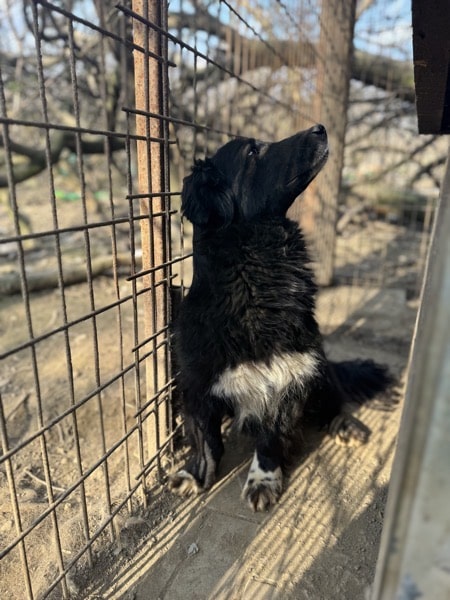 Smutje ist einen Tag vor unseres Besuchs in einen Außenkennel umgezogen. Hier muss sich die Hundegruppe erst noch finden und er muss sich der neuen Umgebung vertraut machen. So ist Smutje uns gegenüber etwas unsicher und weicht uns lieber aus. Wir konnten ihn später in einer Kennelecke fixieren und dort auch überall streicheln. Genießen konnte er es noch nicht. Wir hoffen, dass der süße Smutje nun ausreisen und bei seinen einer Familie Vertrauen aufbauen kann.