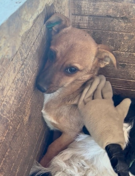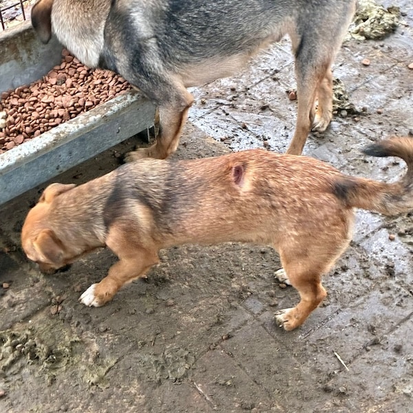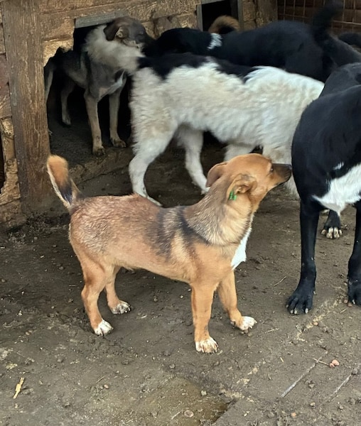 Unsere winzige SOLE hofft seit Monaten mit ihren Geschwistern im riesigen Shelter auf ihre Chance. Dort sitzen sie in einem sehr wuseligen Junghund-Kennel und zeigen sich verträglich. Leider macht der fehlende Menschenkontakt sich bemerkbar und SOLE hielt sich die meiste Zeit in der Hütte auf, während wir im Kennel waren. Als wir uns ihr dort zuwandten, drückte sie sich in die hinterste Ecke und wäre wohl am liebsten unsichtbar geworden. SOLE drohte etwas durch Knurren, ließ sich jedoch behutsam berühren. Geheuer war ihr diese intensive Nähe nicht und sie konnte die Zuwendung noch nicht genießen. Für das sensible Mädchen wird es nun höchste Zeit, bei verständigen Menschen ankommen zu dürfen, damit sich ihre Unsicherheit nicht weiter verfestigt. Um sich zu einer aufgeschlossenen Hündin entwickeln zu können, wünschen wir der kleinen SOLE, dass sie nun rasch gesehen wird und auf der Sonnenseite losleben darf. Mit den anderen Hunden zeigt sie sich junghundtypisch verspielt und verträglich. Aktuell hat sie eine Wunde am Rücken, deren Ursache unklar ist. Die zuständige Tierärztin wurde informiert. Da SOLE die Kleinste von allen ist, sorgen wir uns umso mehr um ihre Sicherheit und wünschen ihr eine schnelle Ausreise.
