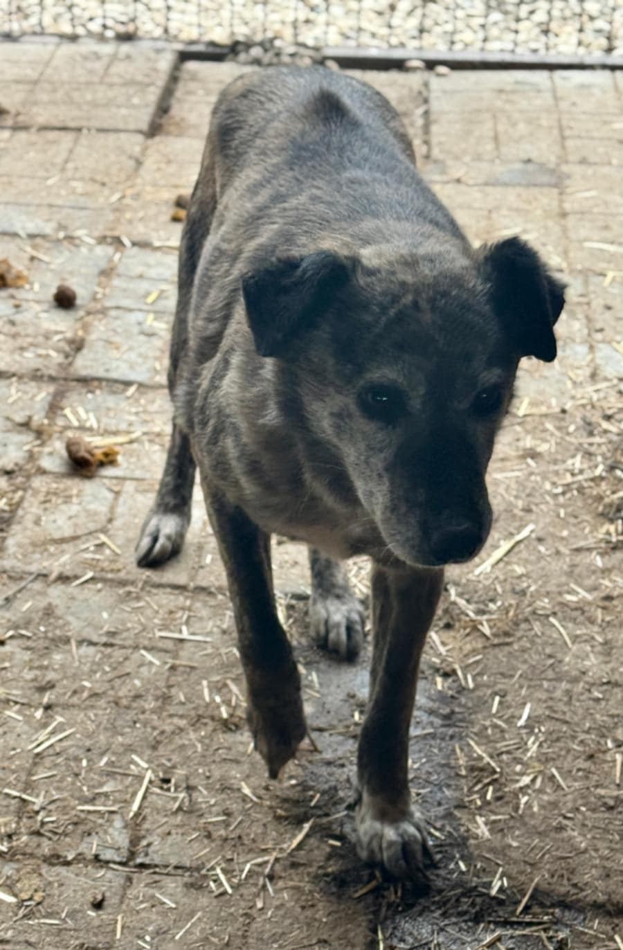 SOLEA sitzt inzwischen seit unglaublichen sieben Jahren im Shelter. Man sieht ihr die lange und harte Zeit inzwischen auch an, sie ist grau geworden. Leider ist SOLEA nach wie vor uns Menschen gegenüber sehr unsicher. Sie flüchtet, wenn wir uns ihr nähern. Wir konnten sie zwar einmal im Laufen vorsichtig berühren, sind aber nicht wirklich an sie rangekommen. Unsere Leckerlies wollte SOLEA leider auch nicht annehmen.