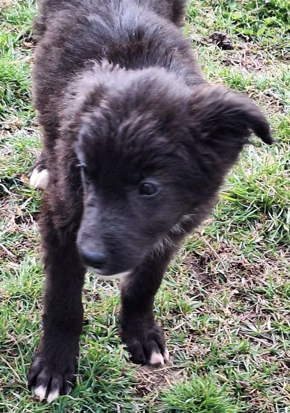 | Wesen & Zutraulichkeit (Character & Trustworthiness) | welpentypisch (typical for puppies), verspielt (playful), offen (open), freundlich (friendly), neugierig (curious), sehr menschenbezogen (very people-related), gerne anfassbar (likes to be touched), überall anfassbar (touchable everywhere), nimmt Leckerchen (takes goodies), zutraulich (trustful) |