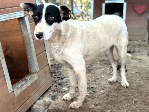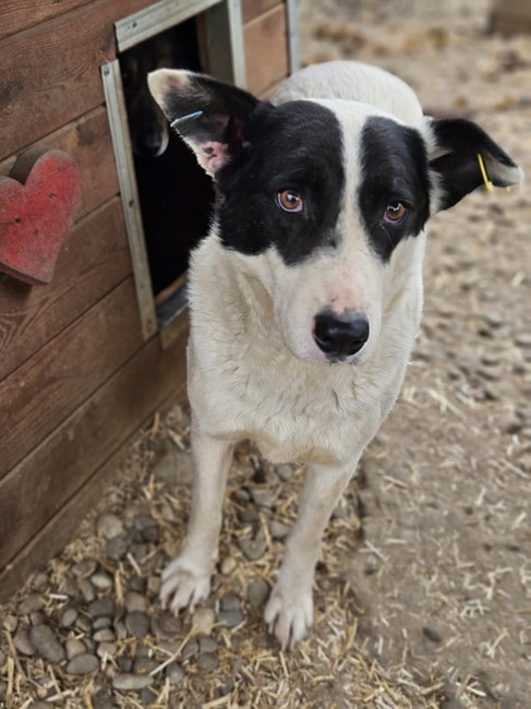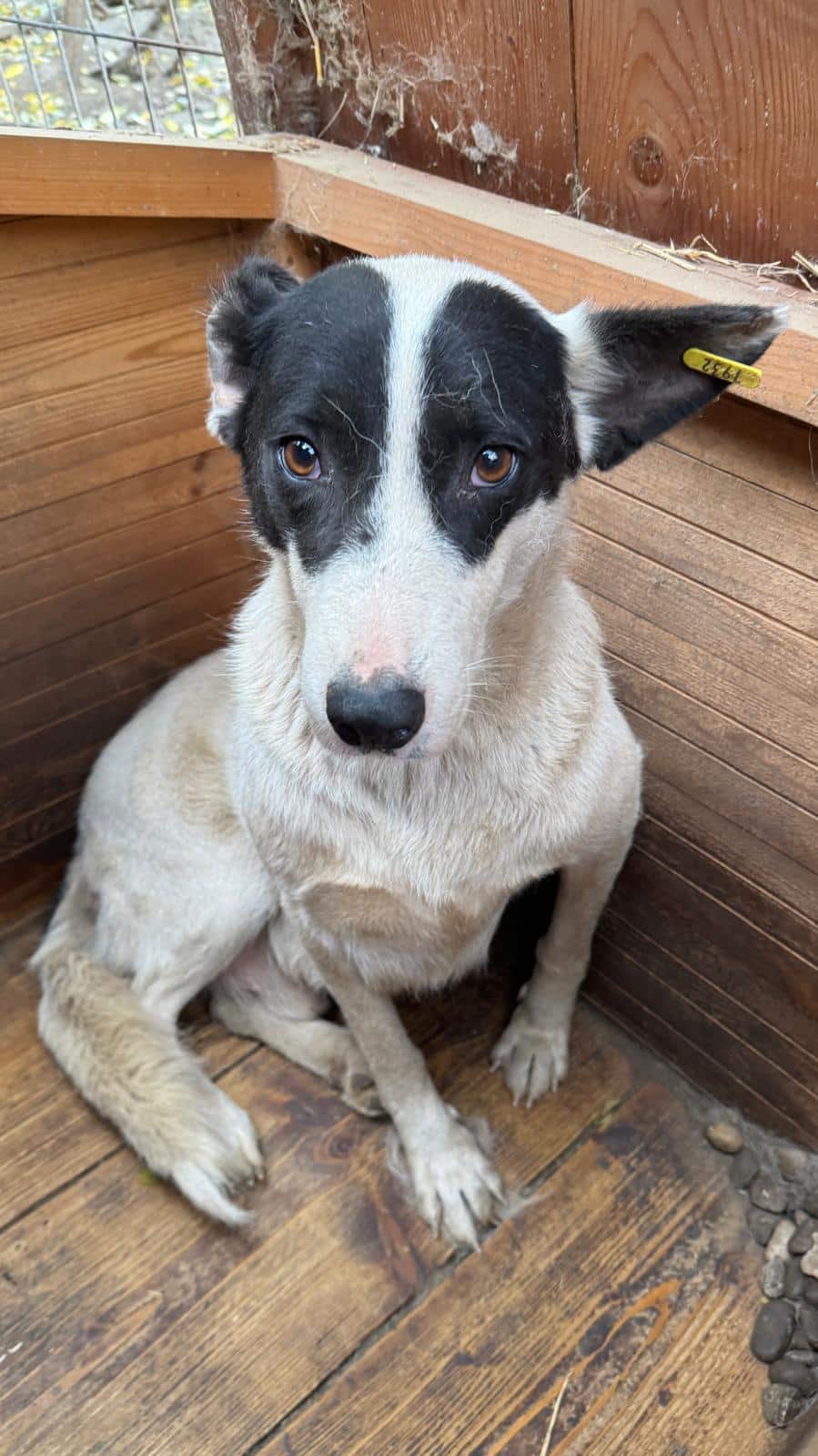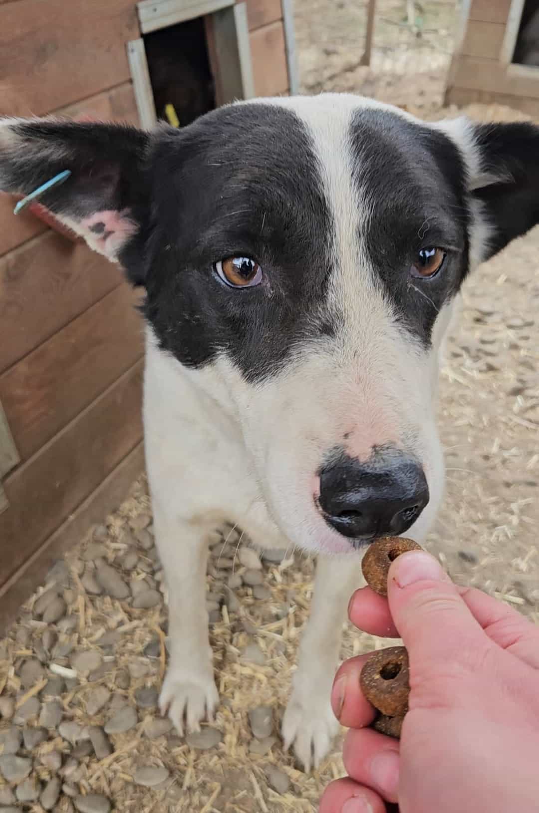 Der hübsche SPOCKY beobachtete uns neugierig als wir seinen Kennel betraten. Als wir unsere Leckerchen hervor holten, kam er sofort zu uns und nahm gerne unsere Leckerchen aus der Hand. Dabei konnten wir ihn vorsichtig an der Schnauze berühren. Für mehr fehlte ihm der Mut und er wich zurück. In einer anderen Umgebung mit verständnisvollen Menschen sollte dieser letzte Schritt des fehlenden Vertrauens bald überwunden sein.