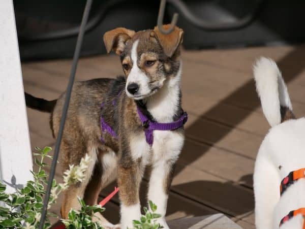 Wie ihre kleinen Kumpelinen ist auch Stacy mit den Katzen indoor fein. Draußen ist noch etwas Management notwendig, aber es ist generell ein gutes Miteinander.