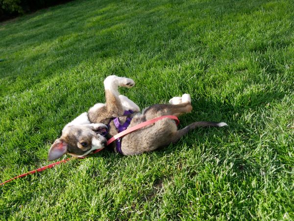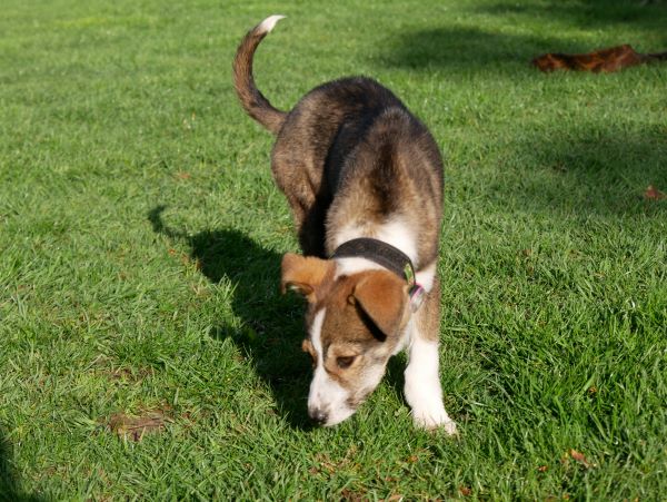Spazierengehen ist noch sehr spannend und aufregend; da ist im Moment noch der Weg das Ziel. Aber so darf das auch sein; gemeinsam Neues entdecken, Neues lernen und am Ende ausgelastet und glücklich zu Hause verarbeiten. Tag für Tag lernt sie etwas hinzu. Sie orientiert sich hierbei sehr gerne am Pflegefrauchen, sucht mittels Blickkontakt Rückendeckung.