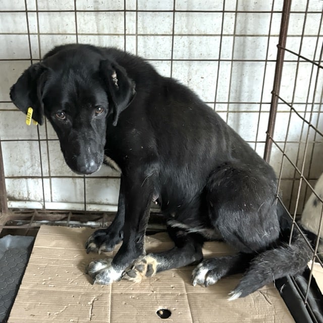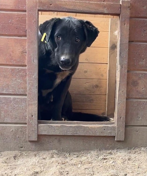 STAR versteckte sich, als wir den Kennel betraten. Sobald wir ihr Aufmerksamkeit schenkten, versuchte sie, zu fliehen. In der Hütte konnten wir sie allerdings vorsichtig streicheln. Sie versuchte zwar, dabei zu entkommen, blieb aber immer defensiv.