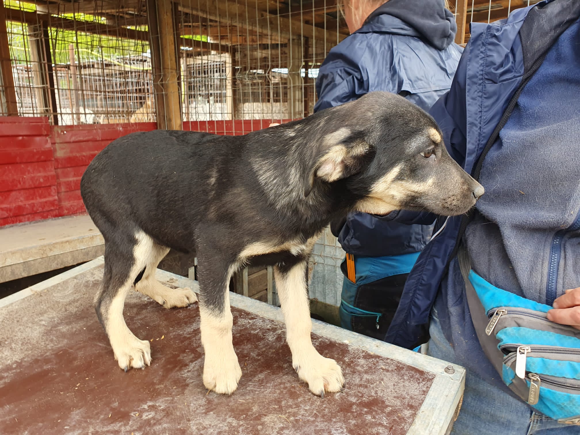 - lebt auf 8qm mit 11 weiteren Welpen und einer scheuen Hündin im Welpen-Gehege