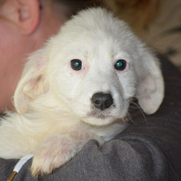Das süße kleine Hundemädel begrüßte und neugierig und offen und war sichtlich erfreut über die Abwechslung. Unsere Streicheleinheiten genoss sie und auch auf dem Arm konnte sie sich entspannen. Sie agierte welpentypisch verspielt mit ihren Hundekumpels und uns.