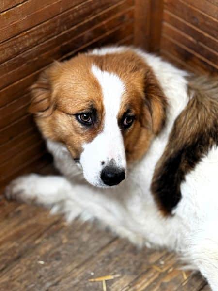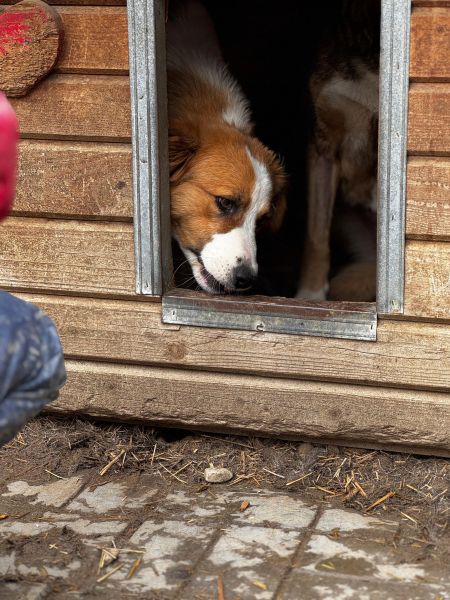 SUSE wurde nun in einen Außenkennel gesetzt, sie ist schon wirklich überfordert, wir konnten sie behutsam berühren, sie zeigte kein Abwehrverhalten aber genießen konnte sie es leider gar nicht.