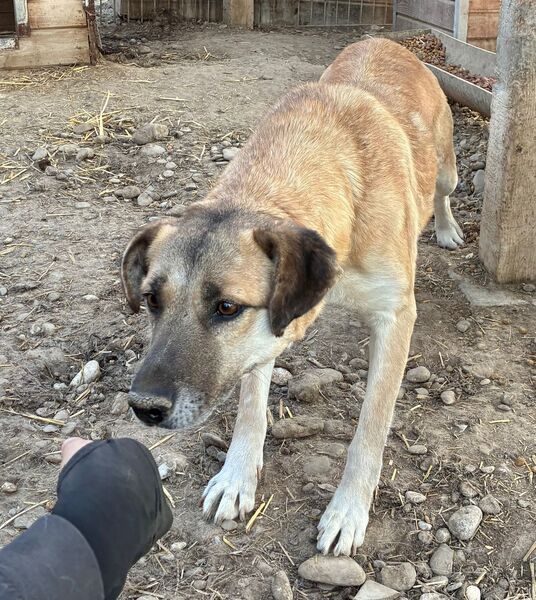 Die sehr nette, etwas zurückhaltende TABEA ist uns gleich beim Betreten des Kennels aufgefallen. Obwohl sie mit zwei sehr aktiven Hunden zusammen sitzt, hat sie immer wieder versucht, aktiv Kontakt zu uns aufzunehmen, auch wenn sie dabei von den beiden anderen Hunden im Kennel stets zurückdrängt wurde. Sie blieb aber hartnäckig und so konnten wir feststellen, dass sie Leckerchen aus der Hand nahm und vorsichtig an der Nase anfassbar war. Zu mehr fehlte ihr der Mut.