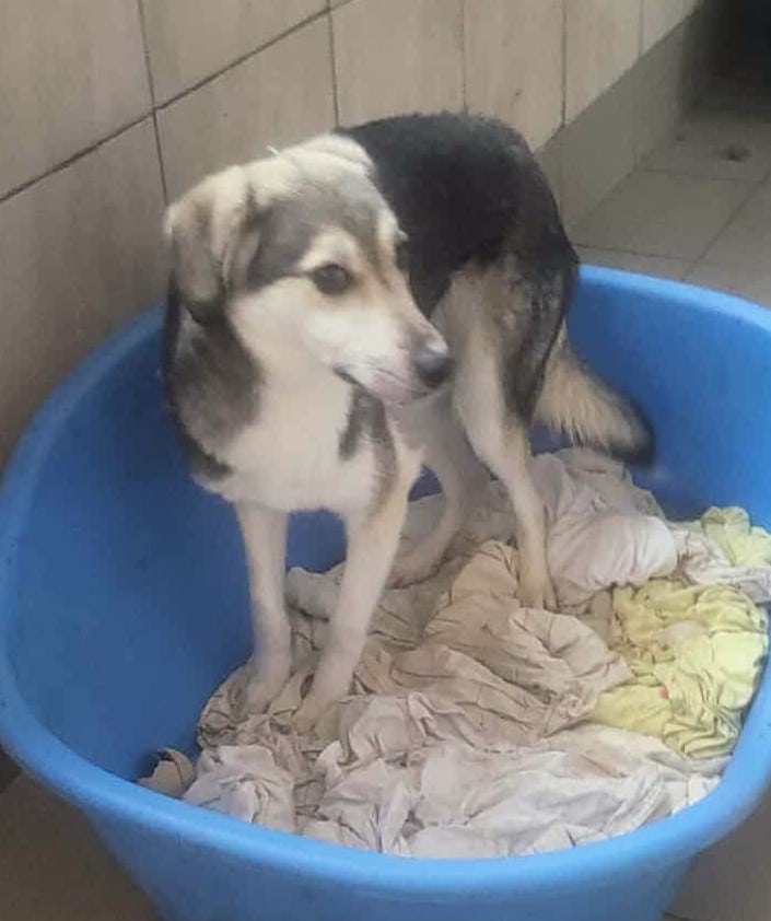 Der kleine TAHMOH wurde Opfer einer Beißattacke und hat dabei schwere Verletzungen erlitten. Er hat eine große Wunde, die im Vethouse liebevoll vom Team versorgt und behandelt wird.