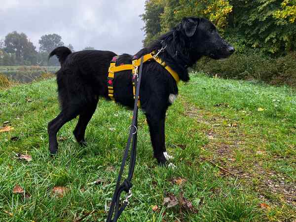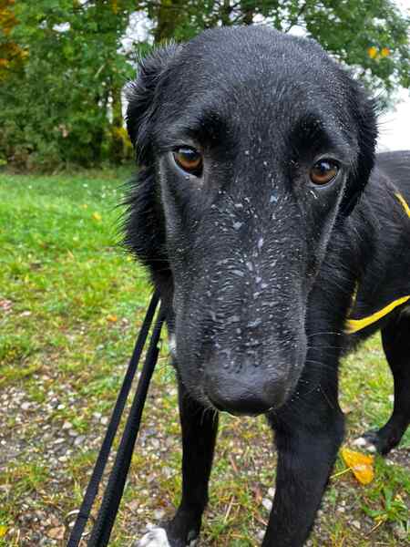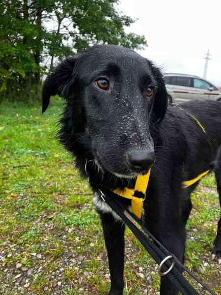 Hallo! Ich heiße Tammo. Ich bin gemeinsam mit meinen drei Schwestern in einem riesigen rumänischen Tierheim groß geworden. Dort gab es nichts außer Gitterstäbe, Beton, Dreck und viel Lärm. Weil ich ein großer, schwarzer Junge bin, hatte ich schlechte Karten, diesen Ort jemals zu verlassen. Aber mein Pflegefrauchen hat mich entdeckt und mich nach Bayern reisen lassen. Anfangs war ich sehr skeptisch wo ich hier gelandet bin, aber mittlerweile habe ich gemerkt, dass es mir hier viel besser geht als im Tierheim. Alles hier war komplett neu und unbekannt für mich. Jede Pflanze musste ich beschnuppern und jedes Geräusch anhören. Aber da ich noch jung bin, habe ich mich schnell an die neue Situation gewöhnt. Mittlerweile kann ich die Treppen selber gehen und steige selber ins Auto ein und aus. Da fahre ich übrigens gut mit. Meistens schlafe ich irgendwann, ist ja recht langweilig das Autofahren. Nachts lasse ich das Pflegefrauchen schlafen. Meine Geschäfte verrichte ich zuverlässig draußen. Gassi gehen kenne ich mittlerweile. Am Anfang hat es mir sehr geholfen, dass ein anderer Hund mitgelaufen ist. Falls du also auch einen souveränen Ersthund haben solltest, kann ich mich an ihm orientieren. Beim Tierarzt war ich ganz artig und bei meinem Mittelmeertest war alles in Ordnung. Darum suche ich jetzt meine Familie. Generell bin ich ein typischer Junghund. Ich darf also noch viel lernen, habe manchmal lustige Ideen und Lust zu spielen.