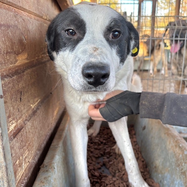 Dieser hübscher Rüde ist anfangs noch etwas schüchtern und unsicher, zeigt sich dabei aber ganz sanft und zugänglich. Er lässt sich überall anfassen, problemlos auf den Arm nehmen und trägt seine Zurückhaltung mit großer Geduld. Mit etwas Zeit und liebevoller Zuwendung wird er wahrscheinlich schon nach wenigen Tagen auftauen und Vertrauen fassen. In der Hundegruppe zeigt er sich sehr verträglich, und sein freundliches Wesen macht ihn zu einem wunderbaren Begleiter. Er wirkt bereits ausgewachsen und ist nun bereit für ein liebevolles Zuhause, das ihm die Sicherheit gibt, die er braucht.