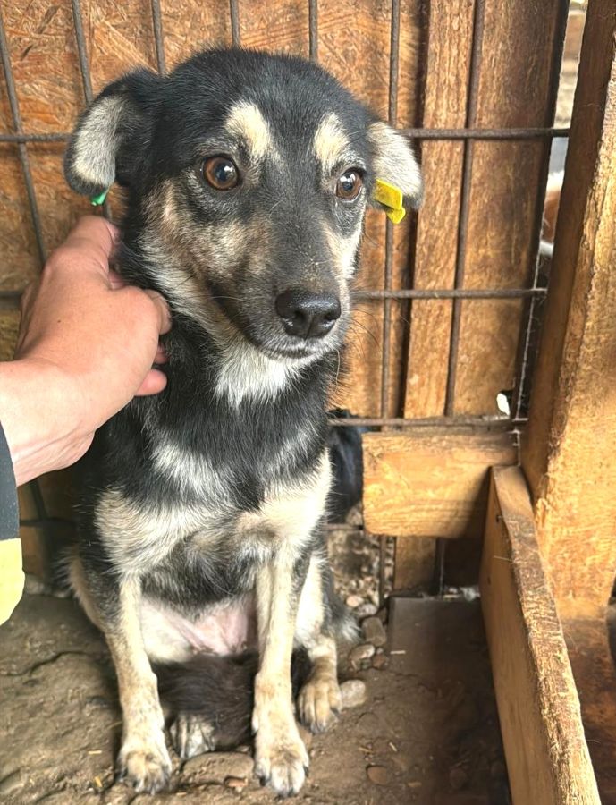 TASSIE ist weiterhin zurückhaltend, doch man merkt deutlich, dass sie beginnt aufzutauen. Inzwischen kommt sie von selbst aus ihrer Hütte und zeigt sich dabei freundlich und sanft. Sie hält zwar weiterhin noch etwas Abstand, aber so langsam überwiegt ihre Neugier und sie wird mutiger. Wir konnten sie sogar auf den Arm nehmen.