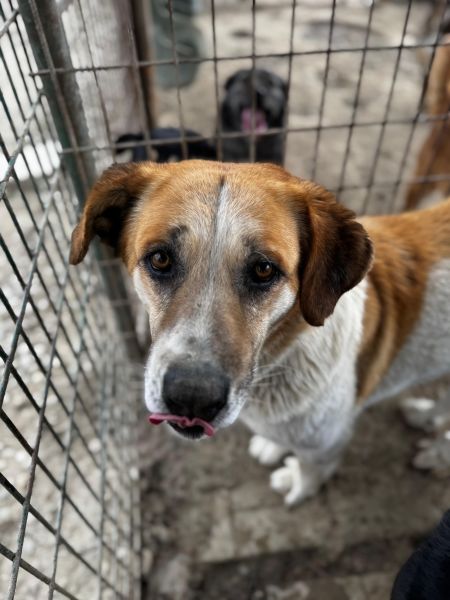 Er ist ein richtig netter Kerl, der sich einen winzigen Kennel mit einem weiteren großen Rüden teilt. TASSILO scheint da gut verträglich zu sein, wobei der andere Rüde recht zurückgezogen in der Hütte saß, obwohl er auch freundlich zu Menschen ist. Vermutlich stört ihn TASSILO mit seiner Energie.