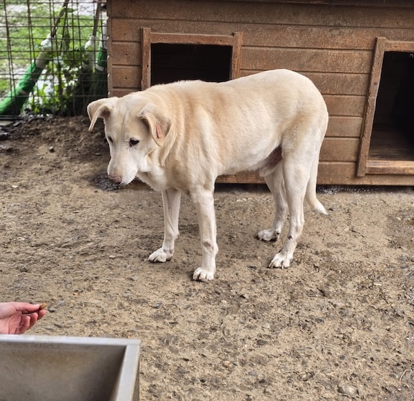 TAYLOR zeigte sich wie gewohnt sehr aufmerksam und neugierig und blieb stets in unserer unmittelbaren Nähe. Diesmal nahm er Leckerlis nicht direkt aus der Hand, schnappte sie jedoch gerne direkt vom Boden vor uns. TAYLOR wünscht sich ein Zuhause bei sehr erfahrenen Menschen, die ihm Sicherheit geben und ihn in seiner Entwicklung weiter begleiten können. Leider schüttelt er häufig den Kopf und ist etwas zu dick.