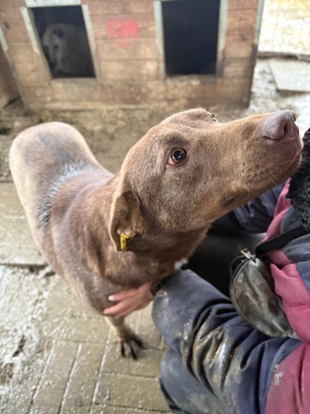 TEEVJE hat sich bei uns als ganz bezaubernde und nette Hündin gezeigt. Sie blieb bei uns in der Nähe und freute sich über jede Streicheleinheit. In ihrem Kennel schien sie diesmal sehr verträglich.