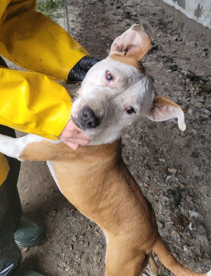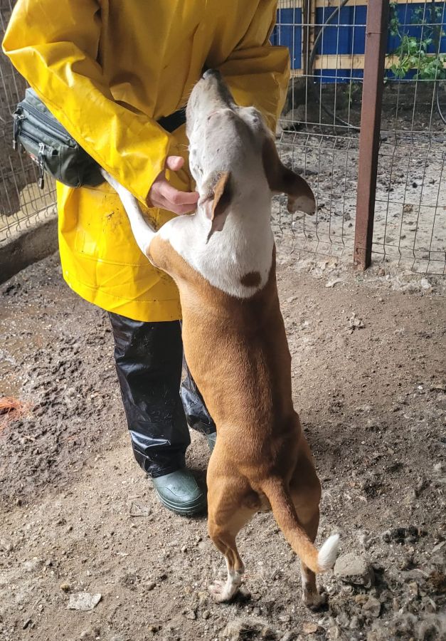 Powerlady TERRA ist eine Staff-Mix-Hündin, zwar klein, aber kräftig und voller Energie. Sie ist extrem menschenbezogen und zeigt sich bei Kontakt sehr überschwänglich, sie liebt Aufmerksamkeit und Nähe und leidet deshalb ganz besonders unter der Einsamkeit.