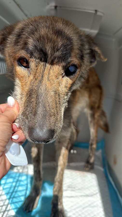 Die freundliche Hündin TINKA wurde auf der Straße hungrig und fast verhungert gefunden. Eine deutsche Frau wurde auf die Hündin aufmerksam und brachte sie in das Shelter. Dort wurde sie medizinisch untersucht und versorgt, dabei war sie ganz brav und lieb. Die Tierärztin berichtete, dass sie alles wirklich tapfer mit macht. Die Augentrübung muss noch abgeklärt werden, ob die liebe Hundeomi dadurch auch eine Einschränkung der Sehkraft oder im schlimmsten Fall sogar blind ist.