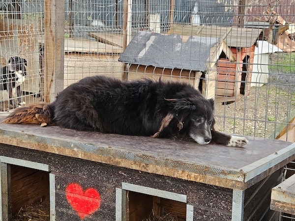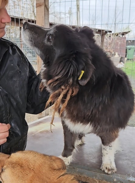 Der süße TINTIN freute sich sehr über unseren Besuch. Die Streicheleinheiten genoss er sichtlich in vollen Zügen und suchte dabei ganz sanft die Nähe zu uns. Mit seinem angenehmen Wesen bringt er beste Voraussetzungen mit, um ein treuer Begleiter im Alltag zu werden. TINTIN blieb während unseres Besuchs ausschließlich auf dem Hüttendach und ging so Streitigkeiten eines anderen Hundes aus dem Weg. Wir schätzen ihn als verträglich ein.