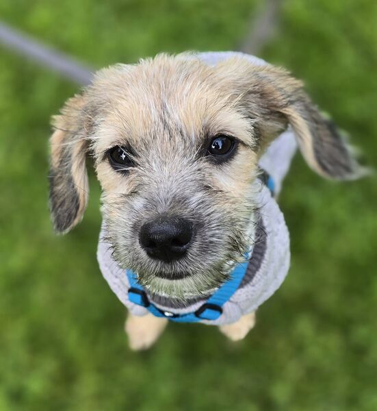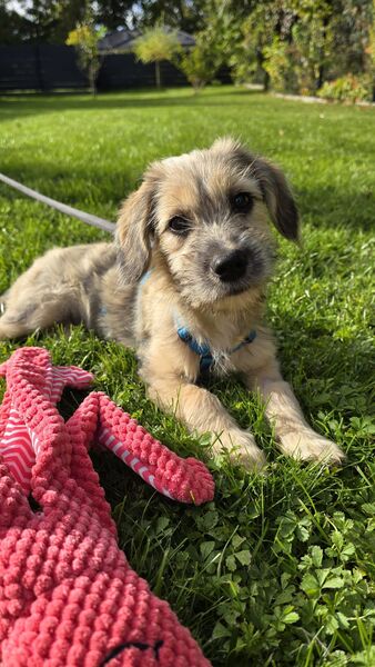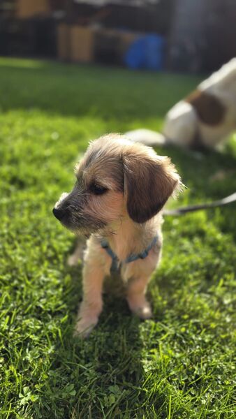 Er ist ein kleiner, süßer, zutraulicher und sehr lieber Welpenjunge, der hier gerade neugierig die Welt entdeckt. TIO möchte gerne dabei sein und nichts verpassen. Kuscheln, ganz viel Körperkontakt und Spielen ist gerade das Größte für ihn. Stubenrein ist er noch nicht, doch das an der Leine laufen klappt schon gut für den Anfang, auch wenn alle andere noch richtig doll interessant ist. Dies muss natürlich noch weiterhin mit ihm geübt werden. Mit den weiteren erwachsenen Hunden auf der Pflegestelle versteht er sich gut und geht respektvoll mit ihnen um. Auch fremden Hunden gegenüber zeigt er sich aufgeschlossen. Alleine bleiben kann und sollte TIO noch nicht, dessen muss man sich bei Interesse bewusst sein.