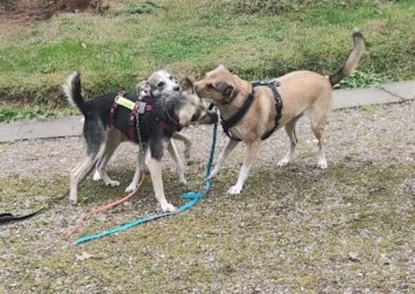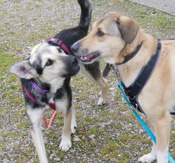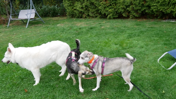 Deutlich ist, dass sie den Menschen liebt, ihn braucht. Sie mag eng bei einem sein, höflich pfötelt sie nach etwas mehr streicheln, vertrauensvoll legt sie den Kopf in die Hand und schaut einen von unten nach oben an und zack – der erste Pfeil versenkt. Im Rudel hier ist sie freundlich und zunächst auch vorsichtig unterwegs; die Hundesprache versteht sie und so war nach ganz kurzer Zeit klar, wer ihre Spielpartner sein können. Sie mag durch den Garten tollen, Gas geben und sie mag mit den Hunden kleine Kabbeleien haben. Aber! – immer das Pflegefrauchen im Blick, falls die sich zu weit entfernen sollte. Dann kommt Tirana sogleich angelaufen und geht mit.