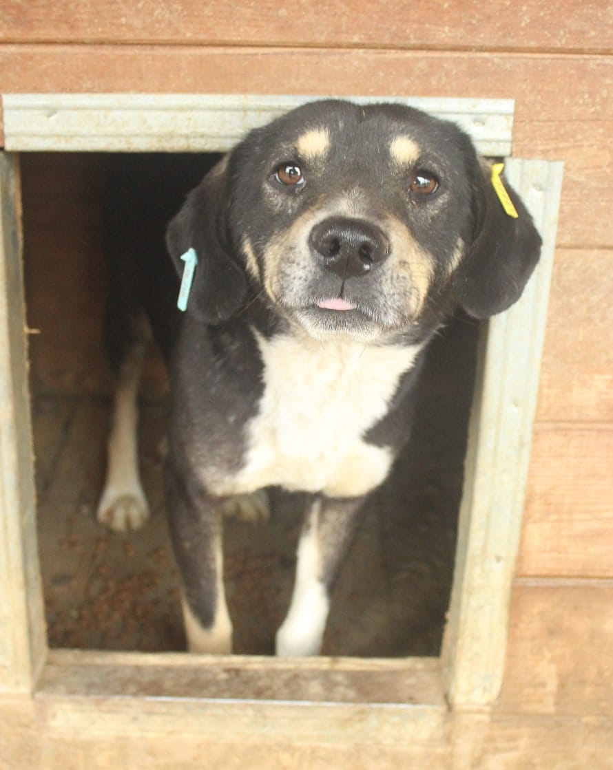 Der kleine TOFIK sitzt seit Ende 2023 in Bucov. Er ist ein freundlicher, noch etwas unsicherer Rüde, der gerne unsere Leckerlies nahm. Wir konnten ihn auch am Kopf streicheln, wohl fühlt er sich dabei aber noch nicht.