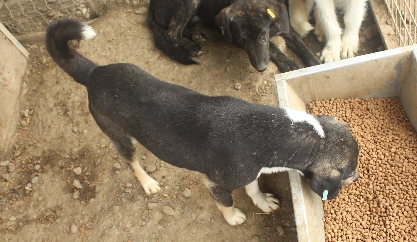 TOFIK zeigt sich verträglich mit den anderen Hunden seines Kennels. Allerdings lässt ihn ein größerer Rüde nicht gut ans Futter und er scheint in seinem Kennel keinen allzu hohen Stand zu haben.