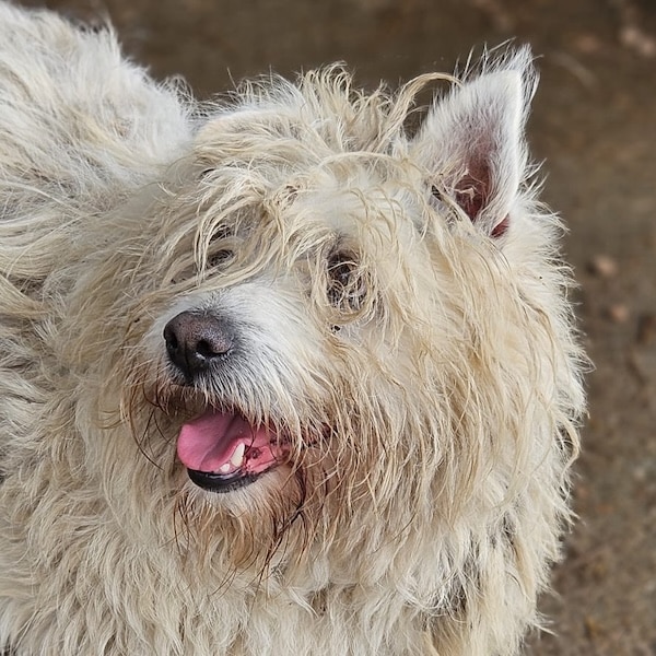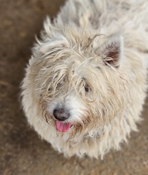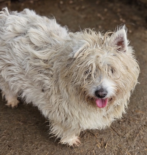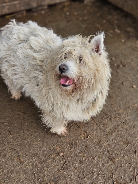 Der kleine TREATS hofft inzwischen seit mehr als 2,5 langen Jahren vergeblich im Shelter auf seine Chance und freute sich sehr über unseren seltenen Besuch. Wir merkten rasch, dass er im Rudel einen hohen Stand hat bzw. die anderen Hunde maßregelt, wenn er es für notwendig hält. Vermutlich kann man sich als kleiner Knirps nur so im harten Shelter durchschlagen, denn es ist ein täglicher Kampf… Uns gegenüber zeigte TREATS sich freundlich, kam neugierig auf uns zu und krabbelte uns schwanzwedelnd halb auf den Schoß. Dabei ließ er sich behutsam streicheln. Geschnappt hat er nur nach einem anderen Hund, als er ihm in dieser Situation zu nah kam. Eifersucht bzw. Ressourcen scheinen bei TREATS ein Thema zu sein und aufgrund vorheriger Beschreibungen, laut derer er auch nach Menschen schnappt, wenn es nicht nach seinen Bedingungen geht, suchen wir für den kleinen, terriertypischen Charakter-Zwerg einen erfahrenen Platz. Wer TREATS lesen kann, ihm klare Strukturen gibt und mit ihm ein Team wird, bekommt sicherlich einen treuen Begleiter. Sein einst so tolles Fell ist leider völlig verdreckt und stellenweise verfilzt. Ebenso leiden seine kleinen Pfötchen unter den widrigen Bedingungen und wir wünschen TREATS, dass er diesen Ort nach all der verlorenen Zeit endlich hinter sich lassen darf.