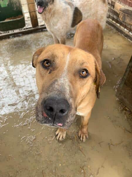 Dieser wunderhübsche Rüde hat sich riesig über unseren Besuch gefreut. Er konnte erst gar nicht glauben, dass wir wirklich zu ihm hereinkamen. Nachdem er begriffen hatte, dass wir wirklich da waren, zeigte er sich sehr neugierig, aufmerksam und interessiert. Auch wenn ihn unsere Berührung noch etwas gruselte, konnten wir ihn überall berühren und er blieb interessiert in unserer Nähe und wollte immer wieder Kontakt und körperliche Nähe. In einer neuen Umgebung würde er sicherlich schnell auftauen, und sich eng an seine Menschen binden. Ein ganz toller Kerl, der bei rasseerfahrenen Menschen mit Hundesachverstand sicher aufblühen würde. Uns hat er sehr bewegt. Verträglich ist er bedingt. Er sitzt in einem Kennel, in dem es Spannungen gibt. Wenn der Chef im Kennel Stress anfängt, steigt er mit ein. Allerdings ist er selber mit dem Chef verträglich und zeigt sich dort sogar verspielt. Er wäre aber sicherlich auch als Einzelhund glücklich.
