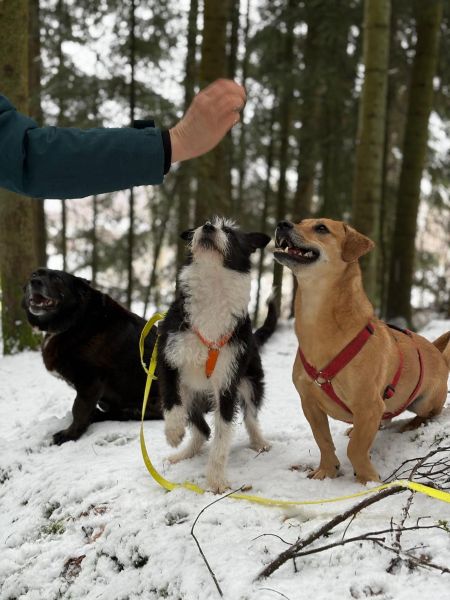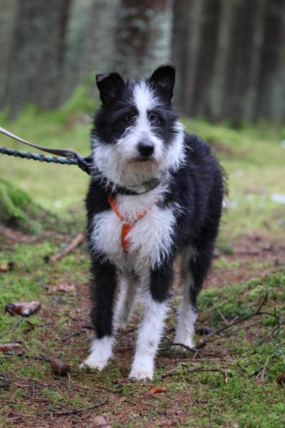 TRIXI war von Beginn an sehr aufgeschlossen, freundlich und überaus verfressen. Gegenüber Artgenossen zeigt sie Futterneid. TRIXI ist ein fröhliches, lebhaftes und sehr anhängliches Mädchen mit Köpfchen. Sie ist gerne aktiv, kann aber auch sehr gut zur Ruhe kommen. Die sehr hundeerprobten, vorhandenen Katzen werden respektiert, jedoch auch gerne mal Gelegenheiten genutzt, diesen nachzustellen, weswegen im neuen zu Hause keine Katzen oder Kleintiere vorhanden sein sollten. Mit den anderen Hunden im Haus (einer älteren großen Hündin und einem gleichaltrigen und etwa gleichgroßen Rüden) kommuniziert sie klar und selbstbewusst. TRIXI fährt gut im Auto mit und kann für eine angemessene Zeit in Gesellschaft anderer Hunde auch schon mal alleine bleiben. An der Leine geht sie bereits sehr gut und hört auch schon auf ihren Namen. Natürlich alles noch ausbaufähig. In der freien Natur zeigt sie deutliches Interesse an Spuren von Wild. Da könnte etwas Terrier-Temperament bei ihr durchkommen. Bei für sie fremden Personen ist sie zunächst etwas zurückhaltend. Generell findet sie Frauen besser als Männer, Männer müssen sich um ihre Gunst erst bemühen 😊. Mit Kindern hat sie keine Probleme, die mag sie sehr gerne. TRIXI käme als Zweit- oder „Mehr“hund infrage, würde aber auch als Einzelprinzessin klarkommen können, wenn ausreichend Hundekontakte zum Spielen möglich sind. Ein aussagefähiger deutscher Mittelmeertest liegt vor. Bei Interesse meldet euch gerne.