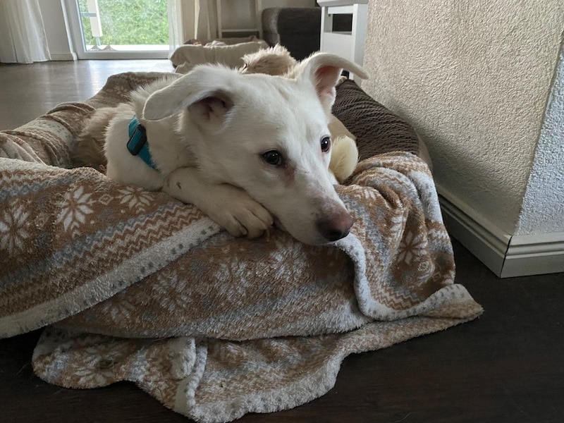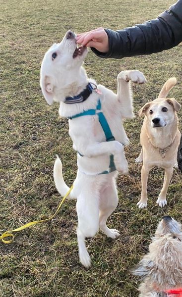 Una ist noch etwas schüchtern, sie lernt aber jeden Tag dazu und ist sehr schlau. Für Leckerli ist sie immer zu haben!