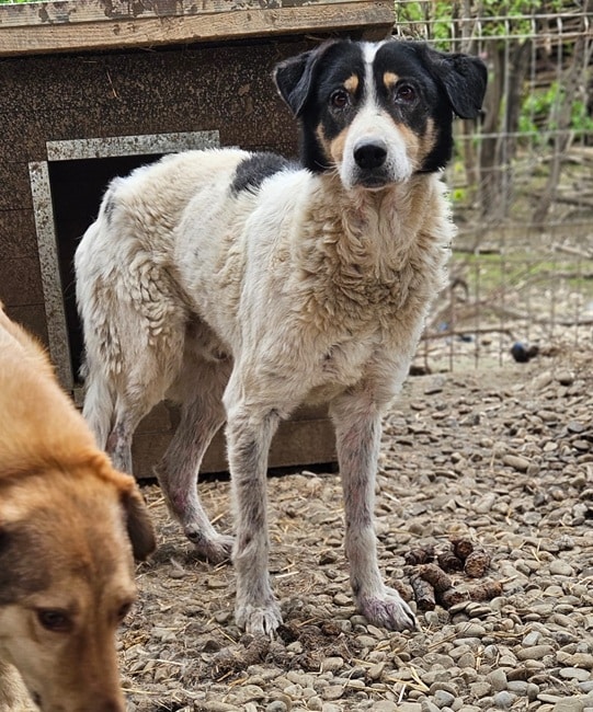 UTHOS beobachtete uns neugierig als wir seinen Kennel betraten. Als wir dann unsere Leckerchen hervor holten, war sein Interesse geweckt. Gerne nahm er unsere Leckerchen, wenn wir sie ihm hinwarfen. Für mehr fehlte ihm der Mut und er wich zurück. Nach 6 Jahren Shelter hätte er eine Chance auf eine Ausreisemöglichkeit wirklich verdient. Ein netter Ersthund, an dem er sich orientieren kann, würde ihm die Eingewöhnungszeit sicher erleichtern. Aktuell hat er Hautprobleme, die lange Zeit nagt an ihm.