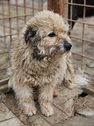 Diese kleine Hündin haben wir in einem der letzten Kennel im Shelter gefunden. Zunächst wusste sie nichts mit uns anzufangen. Sie wich uns aus und versuchte nach Möglichkeit zu flüchten. Dennoch war es möglich, sie unter Bedrängung in der Hütte anzufassen und zu streicheln. Dabei zeigte sie zu Anfang leichtes Abschnappverhalten. Sie konnte sich aber relativ schnell beruhigen und ließ es dann zu, angefasst zu werden. Genießen konnte sie dies jedoch nicht. Leckerchen nahm sie ausschließlich vom Boden. Die kleine Maus leidet unter einem sehr stark verfilzten Fell. Gerade im Winter ist dies eine Katastrophe, da das Fell nicht mehr trocknet und die Hunde ständig nass sind. Diese Hündin sollte zeitnah ausreisen dürfen, damit sie dem rumänischen Winter nicht weiter ausgesetzt sein muss. Aktuell lebt sie mit einer weiteren Hündin zusammen und scheint dort verträglich zu sein.