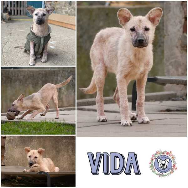 Vida, eine gebeutelte Seele. Die ganz zarte, sanfte und so Menschenbezogene Vida wurde in Bucov von den anderen Hunden gemobbt und nicht ans Futter gelassen. Sie litt so sehr, dass sie schlimme Hautprobleme bekam und fast verhungerte. Gerade rechtzeitig entdeckten wir sie als Notfall und holten sie zu uns. Ich habe noch nie eine so sanfte Seele im Arm gehabt, die sich so sehr an mich schmiegte, als sie ankam. Als wenn sie wüsste, dass nun alles gut wird. Vida möchte noch immer in einen hineinkrabbeln und liebt es, zu kuscheln. Sie saugt jede Aufmerksamkeit und die Liebe, die sie nun bekommt, auf. Inzwischen hat die junge Hündin gut zugelegt und die Haut ist auch schon etwas besser geworden. Doch richtig verheilen wird dies erst, wenn sie in einer liebevollen Familie endgültig zur Ruhe kommen kann.