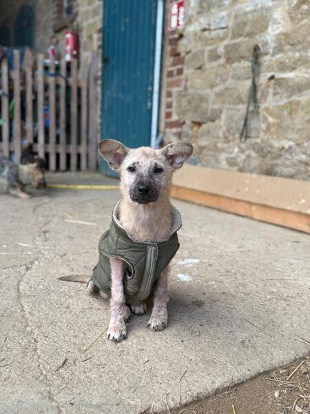 Sie spielt mit den anderen Junghunden, aber oftmals zieht sie sich zurück und sucht Ruhe. Ihre gebeutelte Seele muss ruhen und sie mag lieber mit dem Menschen kuscheln. Aktuell ist Vida etwa 40 cm groß und wiegt ca. 12 kg. Vermutlich wird sie max. 45 cm hoch werden, wenn sie ausgewachsen ist. Mit ihren Artgenossen verträgt sie sich gut und geht jedem Ärger aus dem Weg. Für Vida suchen wir eine ruhigere Familie in ländlicher Umgebung. Über einen Garten würde sich die kleine Maus sicher freuen, ist aber kein Muss. Ein ruhiger, entspannter Artgenosse wäre kein Problem, aber sicherlich hätte sie nichts dagegen, wenn sie die Aufmerksamkeit ihrer Familie nicht teilen müsste und Einzelprinzessin würde. Katzen hat Vida schon kennengelernt und sie zeigte kein großes Interesse an ihr. Zu kleine Kinder würden sie stressen, größere Kinder ab etwa 10 Jahren wären absolut kein Problem, diese können toll kuscheln, denn das kennt sie hier bei uns bereits. Die so sanfte, hübsche Vida möchte geliebt und umsorgt werden. Damit die Seele und die Haut heilen können. Wenn du Vida‘s sicherer Hafen werden möchtest, dann lern die süße Maus unbedingt kennen. Bei Interesse an Vida bitte per mail melden: