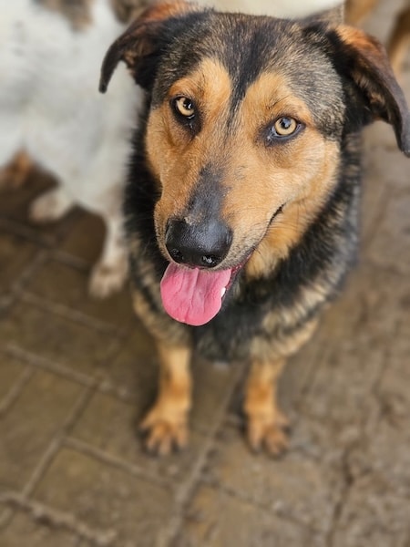 VIOLINA sitzt zusammen mit 13 weiteren Junghunden in einem Kennel. Zusammen mit den anderen Junghunden wuselte sie um uns rum. VIOLINA nahm gerne unsere Leckerchen aus der Hand. Dabei konnten wir sie auch an der Schnauze berühren. Für mehr Nähe fehlte ihr der Mut. Sie ist seit Welpe an im Shelter und hat Streicheleinheiten nie kennengelernt. In einer anderen Umgebung würde sie aber sicher noch gut auftauen.