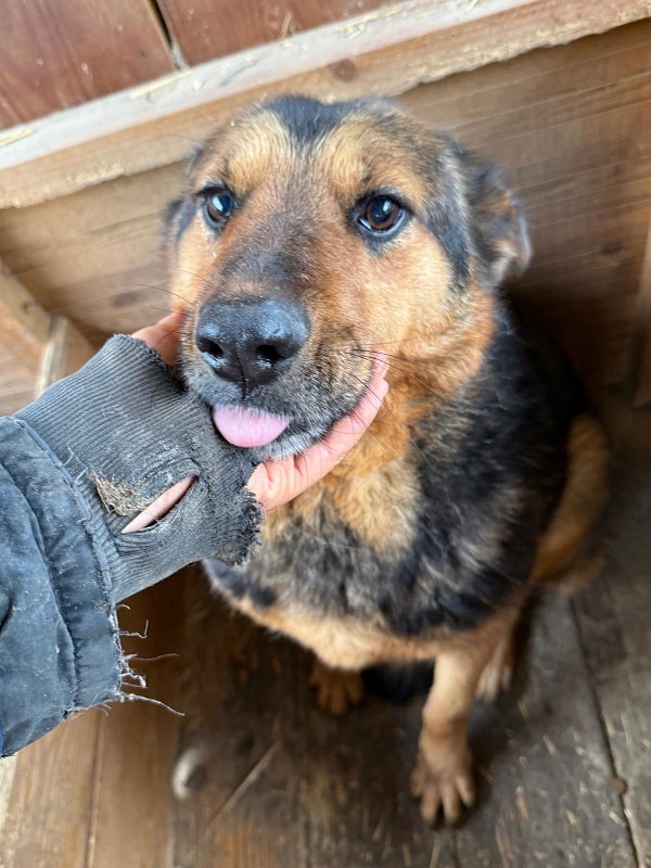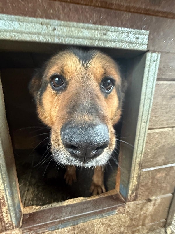 Bald fünf Jahre wartet Vitus schon im Shelter, einfach traurig. Trotz dieser langen Zeit ohne Menschenkontakt ist er weiterhin neugierig auf uns Menschen. Als wir uns ihm direkt gewidmet haben, reagierte er unsicher. Er nahm unsere Leckerlies vom Boden und in der Hütte konnten wir ihn gut anfassen und streicheln. Seine eher ruhige und schüchterne Art hat und sehr berührt – Vitus kennt es einfach nicht, dass Menschen Zeit für ihn haben. Wir wünschen ihm so sehr, dass er nach dieser langen Zeit endlich gesehen wird und nicht umsonst gewartet hat und dass sich Menschen finden, die ihm eine Chance geben