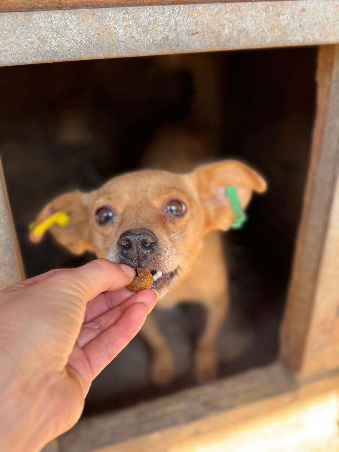 WENDY ist ein wirklicher Sonnenschein und sollte zeitnah ausreisen dürfen. Sie lebt in einem gemischten Rudel und scheint dort verträglich zu sein.