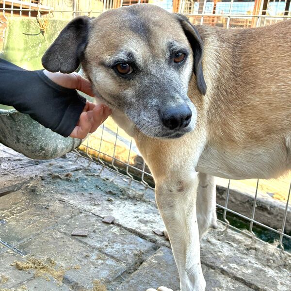 Seit nun bald 8 unvorstellbar langen Jahren hofft unser WHISPER vergeblich im Shelter auf sein Glück – sein ganzes Leben lang. Als junger Hundebub kam er damals mit seiner Schwester dort an und beide haben es in all den Jahren nicht rausgeschafft. Nichts anderes als Stress, Lärm, Dreck und Gitterstäbe durfte er jemals kennenlernen. Wie hält man das aus..? Wir wissen es nicht. Doch WHISPER tut dies Tag für Tag. Bei unserem Besuch hielt er sich lieber in der sicheren Hütte auf und im offenen Kennel hielt er stets einen Sicherheitsabstand ein, um das Geschehen zu beobachten. In einer Ecke des Kennels konnten wir WHISPER schließlich unter Bedrängung gut streicheln. Wir merkten ihm sein Unbehagen an – er kennt diese intensive Nähe zum Menschen einfach nicht und kann sie deshalb noch nicht wirklich genießen. Er machte es jedoch ganz fein mit und hielt einfach still. Wir sind uns sicher, dass WHISPER in einer stressfreien Umgebung und bei verständigen Menschen schon bald große Fortschritte machen und nach und nach Vertrauen fassen würde. So sehr wünschen wir ihm die Chance, endlich auf der Sonnenseite ankommen und seine Sorgen vergessen zu dürfen. WHISPER ist verträglich und braucht mindestens einen netten Ersthund an seiner Seite.
