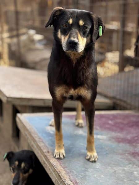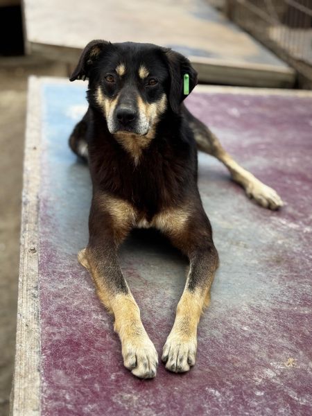 In einem Kennel voller Junghunde, begegneten wir diesem hübschen, eher ruhigen Rüden. Er hat sich in unserer Nähe aufgehalten und wirkte dann auch entspannt. Gern nahm er unsere Leckerchen aus der Hand und ließ sich sogar vorsichtig streicheln. Das scheint er bisher nicht kennengelernt zu haben, hat die Situation aber trotzdem mit Bravour gemeistert. In einem verständigen Zuhause, wird er neben den Leckerchen sicher schnell auch die Streicheleinheiten gänzlich genießen können.
