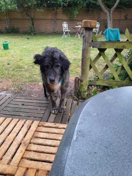 Die 3, BUBBLES, DOGAN und WISDOM, haben sich dort unspektakulär beschnüffelt, fanden sein Shelterparfüm eklig, und sich dann schnell wieder dem Garten gewidmet. BUBBLES hat etwas sorgenvoll geguckt und er sollte Recht behalten, der Kerl ist doch glatt mit ins Auto gestiegen.
