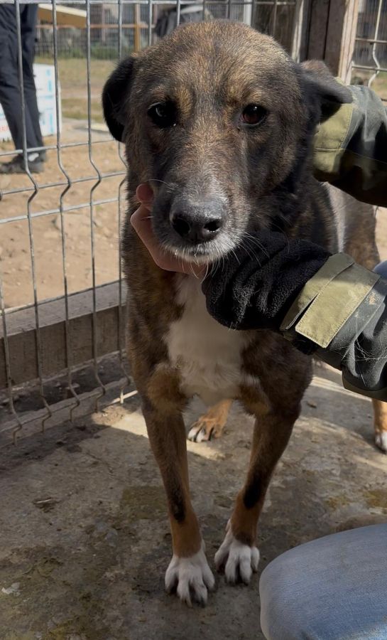 WOODY ist ein absolut neugieriger Kerl, der uns gleich mit seiner freundlichen Art begeistert hat. Als wir außerhalb seines Kennels waren, stand er freudig am Gitter, nahm unsere Leckerlis dankbar entgegen und zeigte sich offen und interessiert. Im Kennel selbst war er zunächst etwas zurückhaltend, doch nach kurzer Zeit fasste er Vertrauen, nahm vorsichtig Leckerlis aus der Hand und ließ sich sogar streicheln.