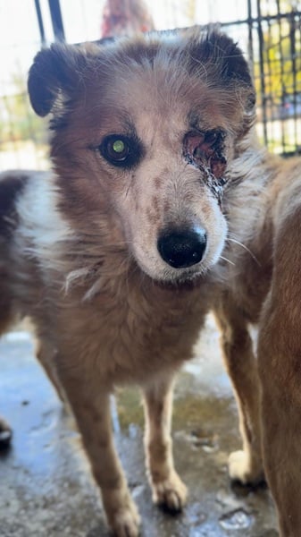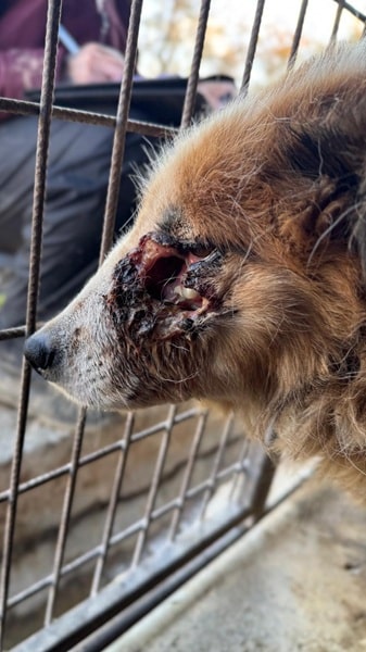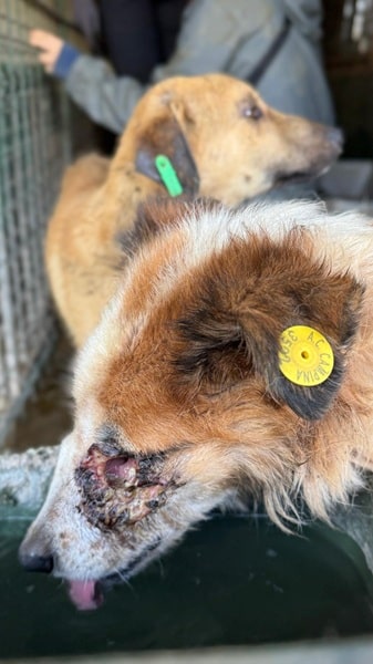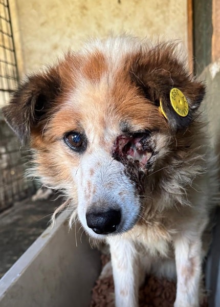 Die süße Yaelia haben wir heute mit einer riesigen Wunde im Vetkennel gefunden. Die mittelgroße Hündin wird dort bereits behandelt, aber ihr Gesicht sieht wirklich schlimm aus! Obwohl sie sicher Schmerzen hatte, konnten wir sie anfassen und streicheln. Sie fühlte sich dabei etwas unwohl, was man ihr angesichts ihrer wirklich prekären Situation wirklich kaum verdenken kann. Aber sie zeigte trotzdem kein Abwehrverhalten, sondern war freundlich und neugierig. Auch den anderen Hunden gegenüber verhielt sie sich nett. Wir hoffen, dass Yaelia zeitnah eine Ausreisemöglichkeit bekommt, wenn es ihr Gesundheitszustand zulässt, denn sie sollte nach dieser schlimmen Erfahrung in Geborgenheit leben dürfen.
