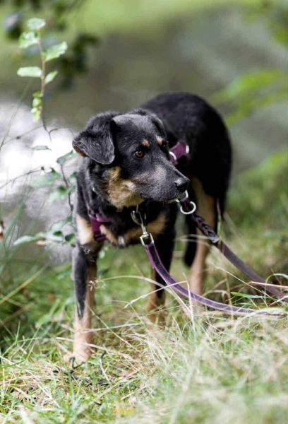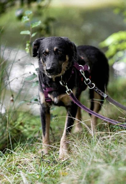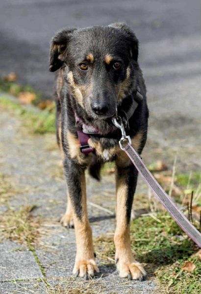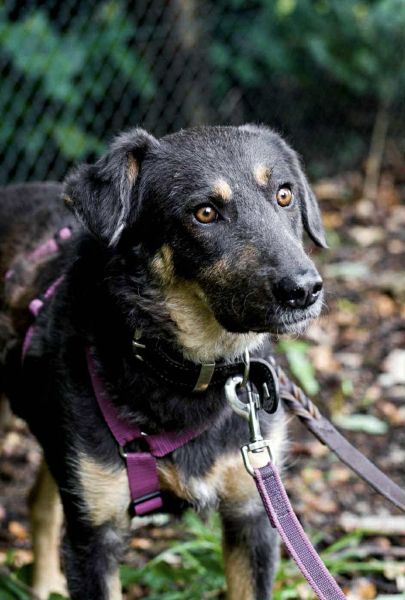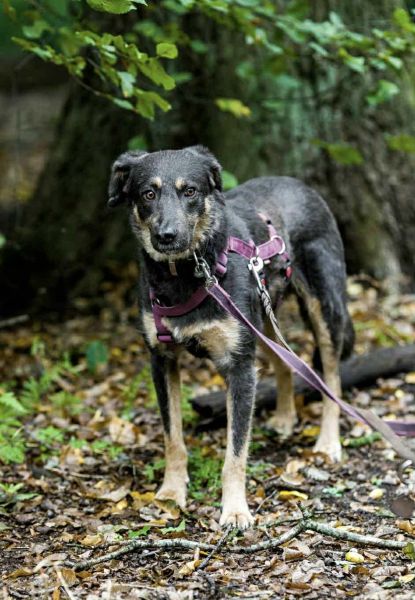 Sie zeigt sich recht umweltsicher, reagiert nur kurz auf laute Geräusche und orientiert sich ab und zu schon in Richtung der Begleitperson. Gemeinsam mit anderen Hunden bleibt sie problemlos mehrere Stunden alleine. Anfassen und Gassi gehen klappen mittlerweile auch richtig gut – hin und wieder lässt sie auch ihre Anspannung fallen: Kraulen im Nacken gefällt ihr mittlerweile ganz gut.