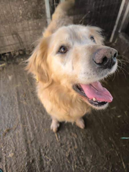 Nach Aussage der zuständigen Tierärztin musste er aus seinem bisherigen Kennel herausgeholt werden, da er dort von anderen Hunden gemobbt wurde und keinen ausreichenden Zugang zum Futter hatte. Diese Erfahrung hat deutliche Spuren hinterlassen: Er war sehr auf der Suche nach Futter und nahm unsere Leckerchen entsprechend gierig an.