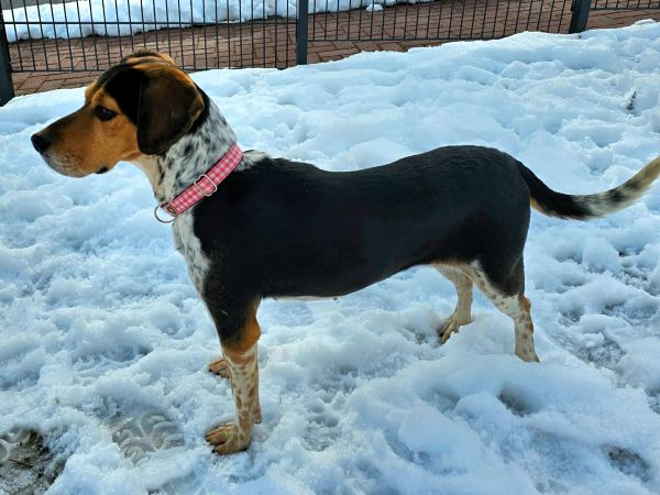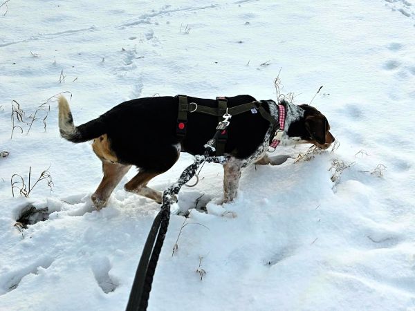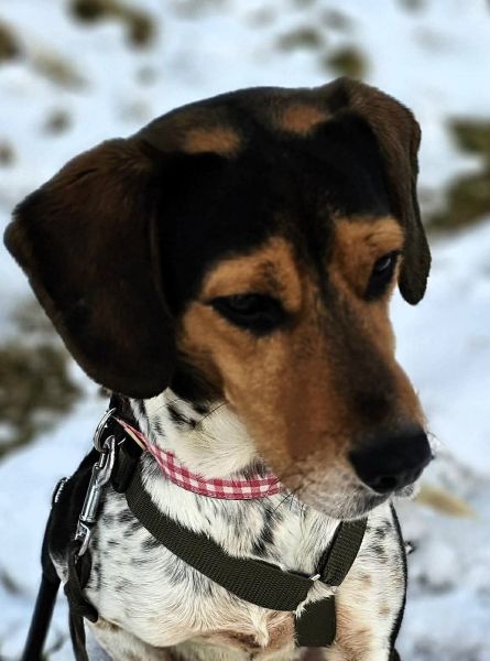 YUKINA läuft sehr gerne mit spazieren und schnüffelt Jagdhund typisch viel. Sie hat keine Probleme mit Umweltreizen, Autos, Menschen, Kinderwagen und geht schon ganz gut an der Leine. Bei Hundebegegnungen ist sie freundlich und zum Teil auch verspielt. Wenn sie gerufen wird, kommt sie voller Freude und setzt sich oft direkt hin.