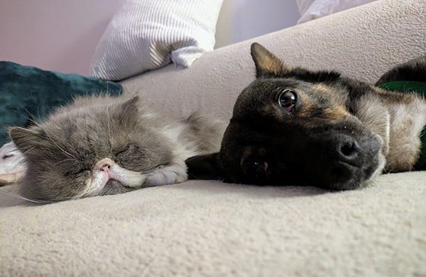 Sie hat sich sehr gut auf ihrer Pflegestelle eingelebt und ist fester Bestandteil des bestehenden Rudels, mit dem sie sich bestens versteht, geworden. Auch mit den im Haushalt lebenden Katzen bildet Yuna eine harmonische WG.