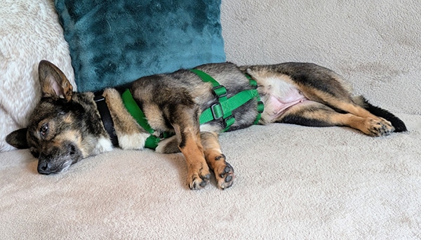 Yuna wurde hier in Deutschland erfolgreich am Leistenbruch operiert. Die Halskrause hat sie anschließend über 10 Tage sehr artig getragen. Am rechten Auge hat Yuna ein Cherry-Eye. Dieses wurde in Rumänien leider schon mit wenig Erfolg operiert, was zur Folge hat, dass eine operative Korrektur hier nicht mehr möglich war. Einschränkungen hat Yuna dadurch jedoch nicht. Lediglich die rote Nickhaut wird sie ein Leben lang begleiten.