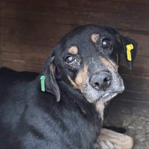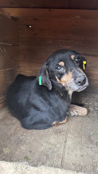Yunis ist ein unsicherer, aktuell leider abgemagerter Rüde. Wir fanden ihn in seiner Hütte liegend vor, wo er teilnahmslos lag. Er schnupperte an der Hand, traute sich aber nicht, unsere mitgebrachten Leckerlies zu essen. Wir konnten ihn in der Hütte streicheln und er zeigte dabei zuerst kein Abwehrverhalten. Als wir seine Zähne kontrollieren wollten, wurde es ihm zu viel und er knurrte. Er ist zwar unsicher, aber keineswegs panisch. Wir wünschen uns für Yunis einen Platz bei erfahrenen Menschen, die ihm aus seiner misslichen Lage helfen.